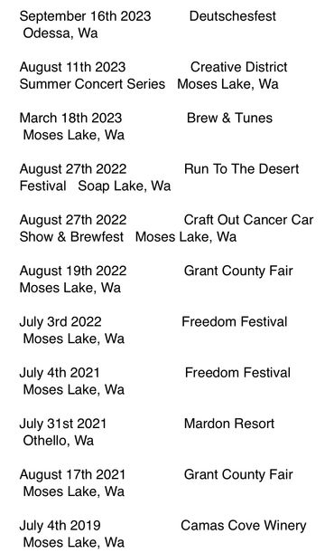 The Band Has Been Performing All Over The Pacific Northwest For Over 15 years. All The Band Members Are Veteran Performers.